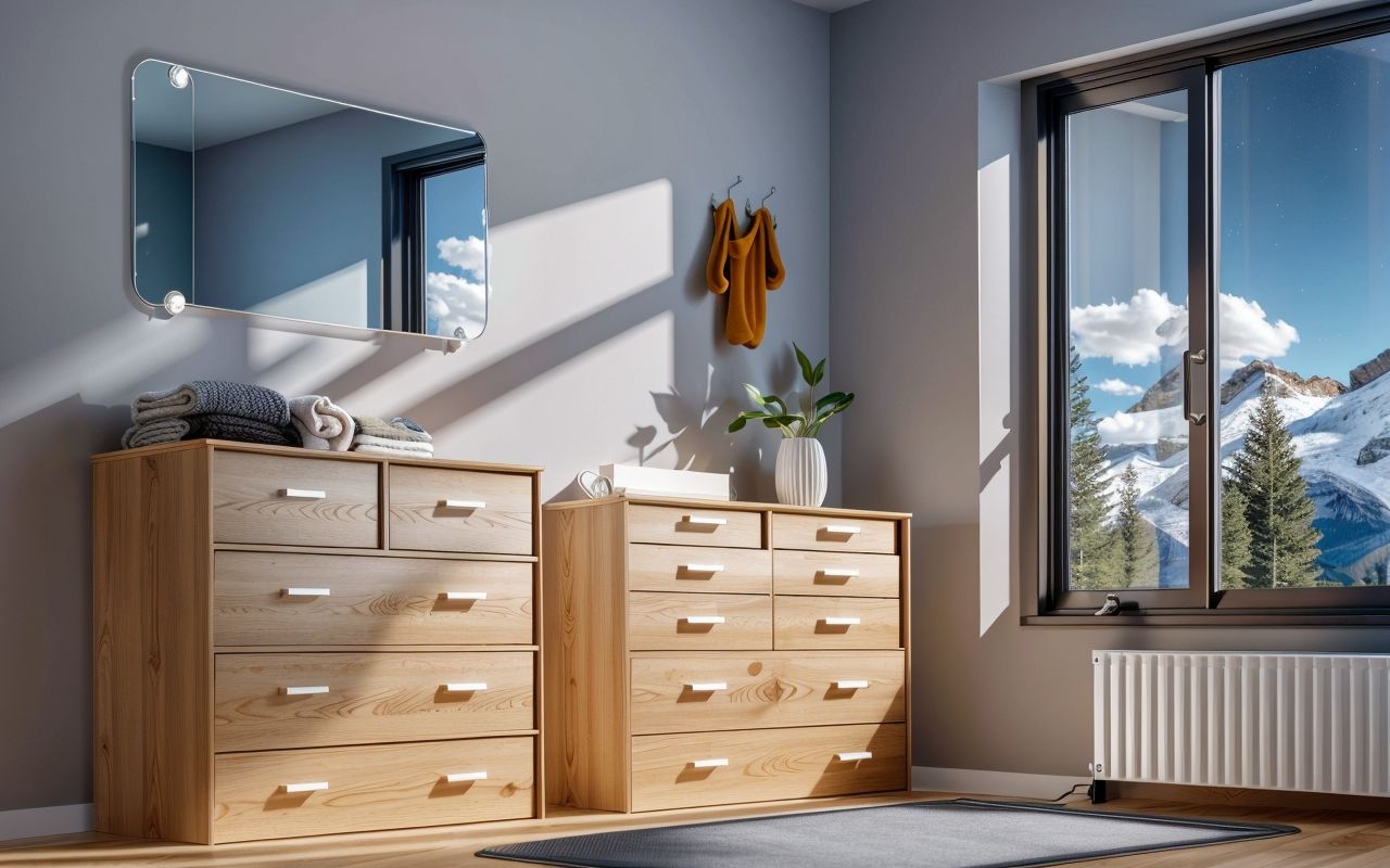 Здесь хранение носков и колготок особенно актуально. Комод с выдвижными вставками помогает держать мелочи в порядке и под рукой.